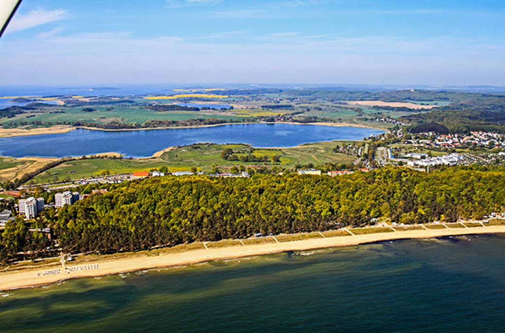 Rundflug: Blick auf Göhren, vom Wasserturm bis zur Seebrücke.