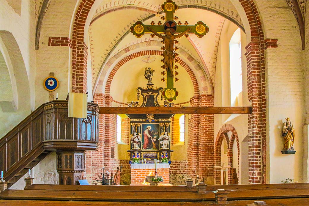 Innenraum mit Kanzel der Pfarrkirche in Altenkirchen.