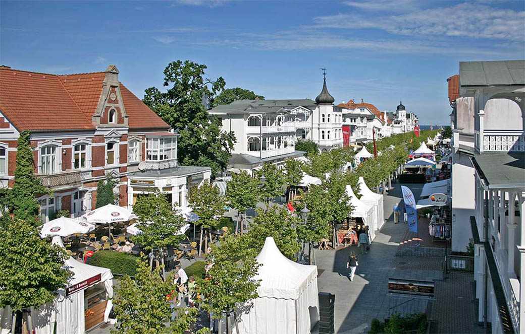 Luftbild vom Ostseebad Binz mit der Seebrücke und dem Schmachter See.
