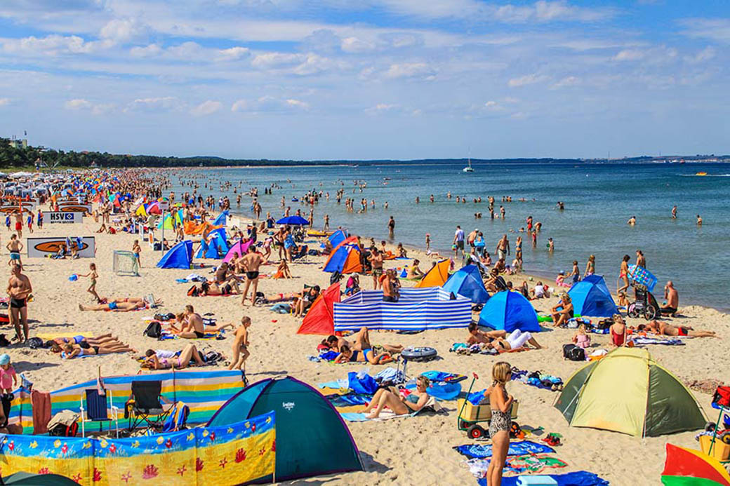 Der Badestrand vor dem Kurplatz. Ostseebad Binz.