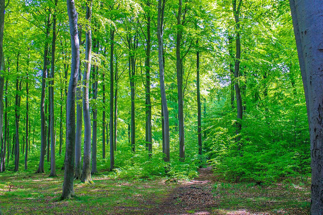 Frisches Frühlingsgrün im Buchenwald der Granitz.