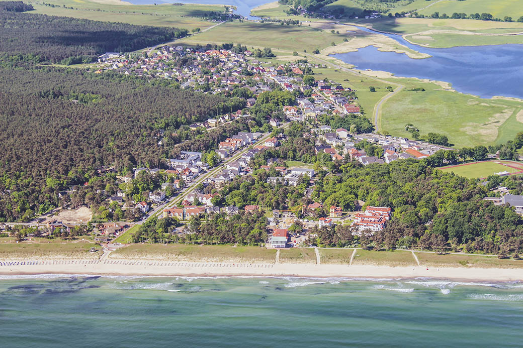 Blick auf Ostsee, den Strand und Ort Baabe.