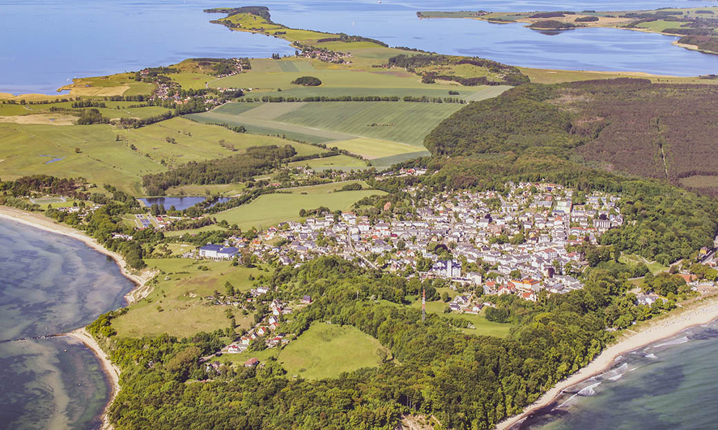 Rundflug: Blick über Vitte, Kloster und Dornbusch.