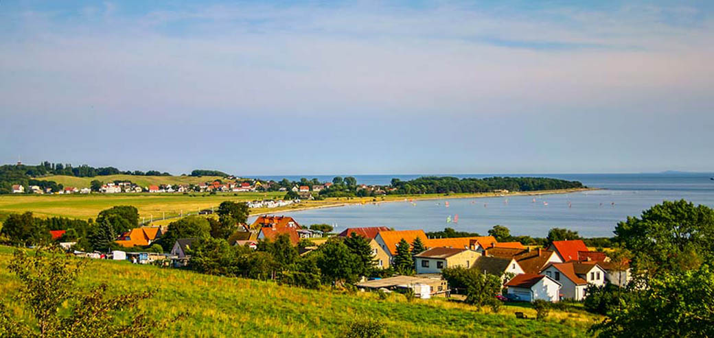 Rundflug: Hiddensee, der Dornbusch und der Ort Kloster.