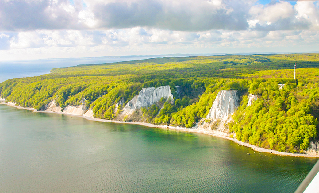 Luftaufnahme vom Nationalpark Jasmund mit Königsstuhl und Victoriasicht.
