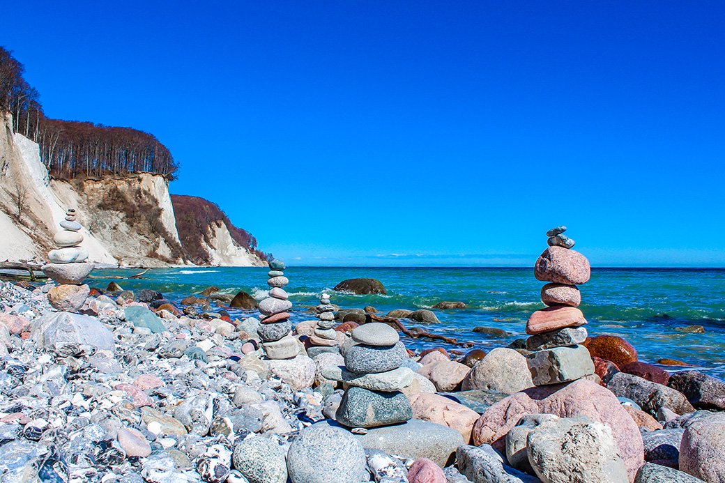 Nationalpark Jasmund: Steinmännchen an der Kreideküste.