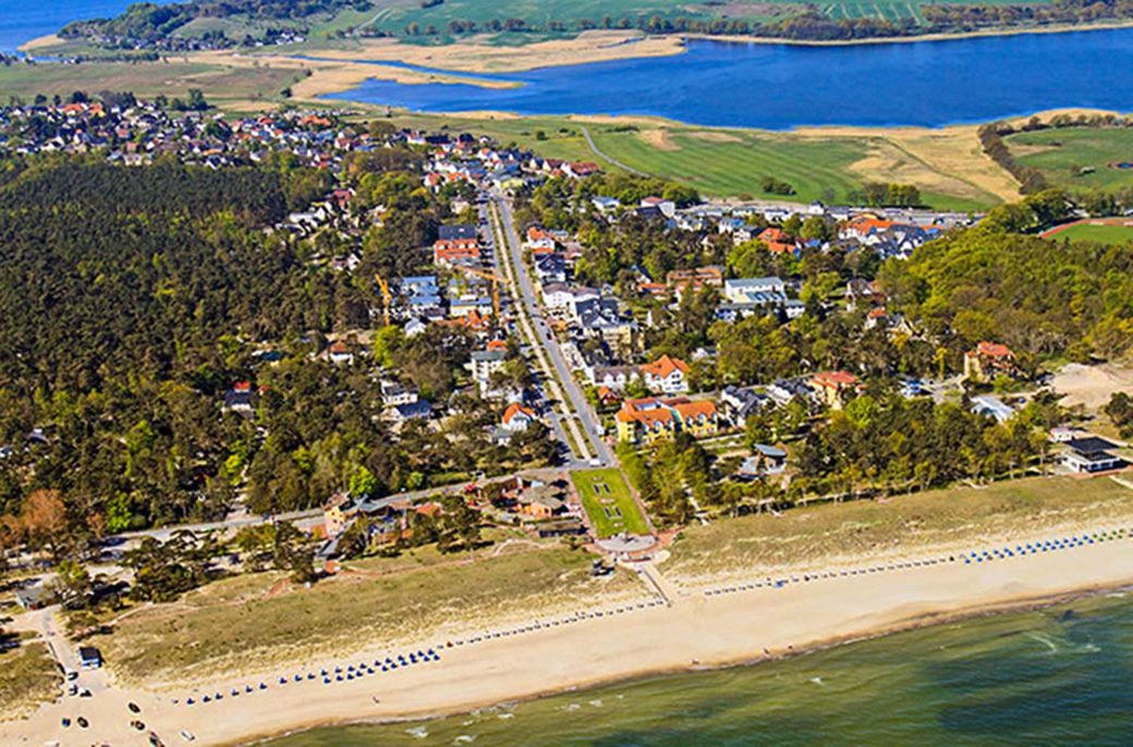 Rundflug: Baabe, Strand, Strandstraße, Selliner See, Bollwerk.