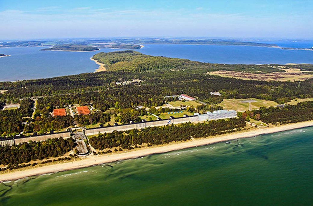 Rundflug: Strand von Prora, KdF-Bad Blöcke vor der Renovierung, Schmale Heide und Bodden.