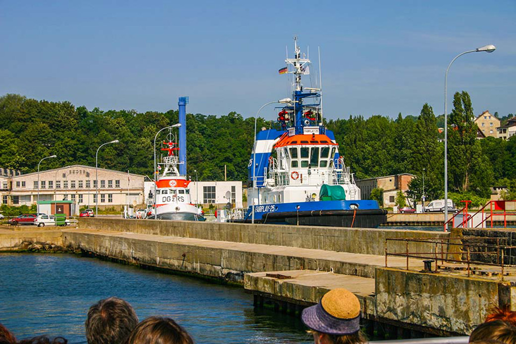 Gleich vorn in der Hafeneinfahrt der Anleger für Wassserschutzpolizei, Zoll, Seenotrettung und Schlepper.