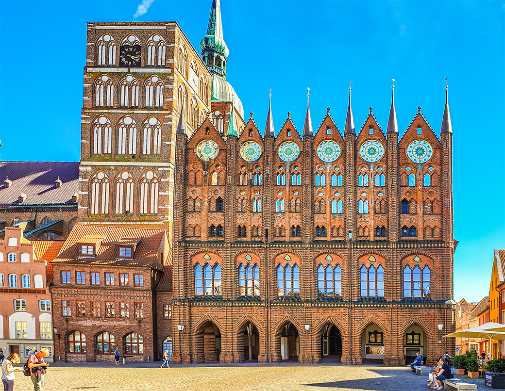 Hansestadt Stralsund: Die prunkvolle Fassade des Rathauses aus verschiedenen Perspektiven. (3)