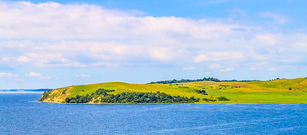 Blick auf die Halbinsel Groß-Zicker mit dem Steilufer der Sanddüne.