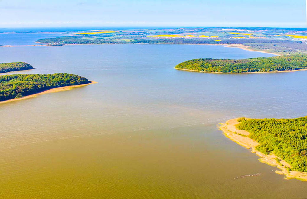 Links vorn die Puhlitz rechts die Landzunge Buhlitz im Kleinen Jasmunder Bodden.