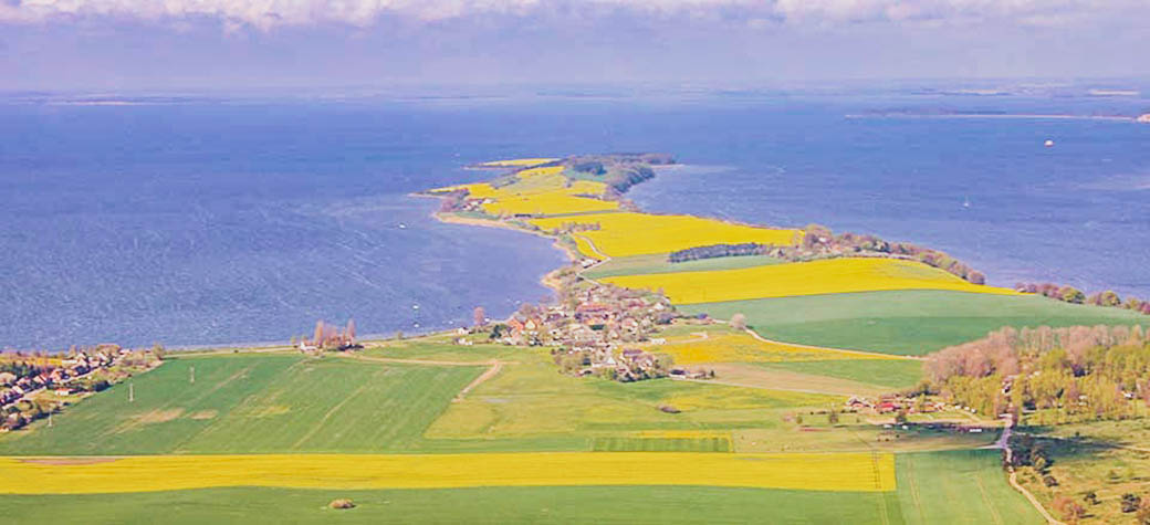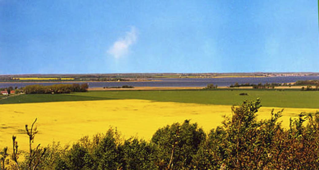 Blick über den Zicker See auf die Gemeinde Mönchgut, Ortsteil Groß Zicker.