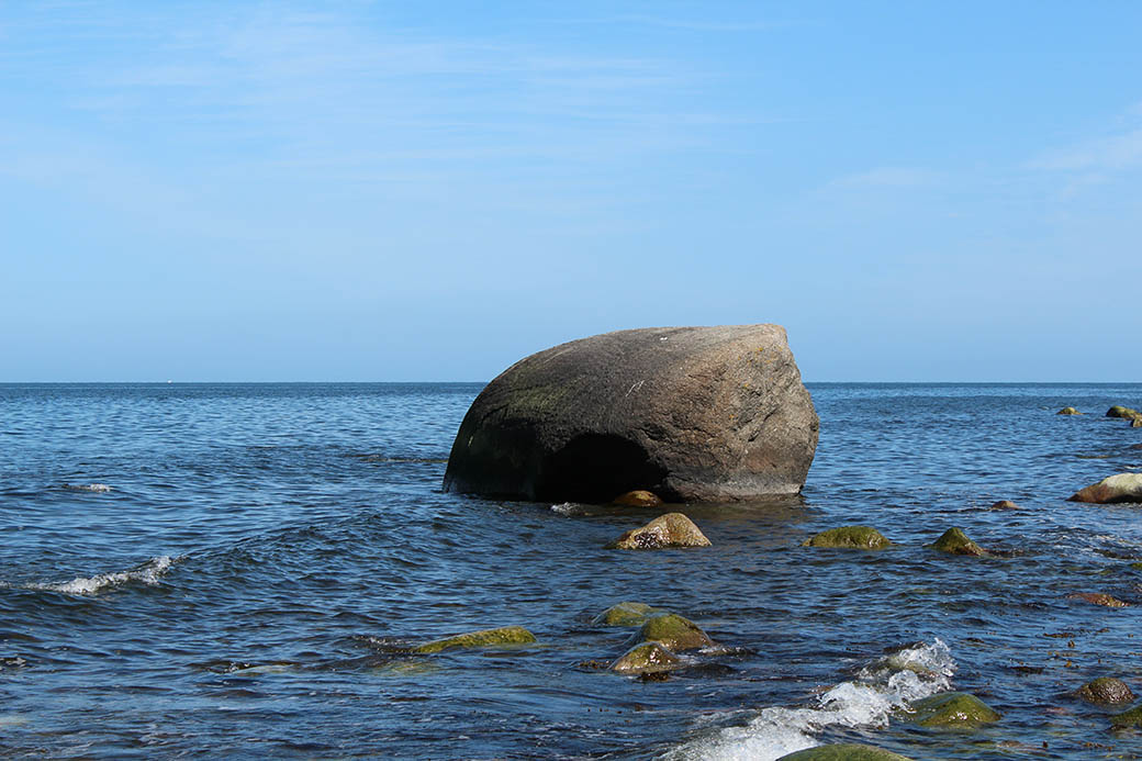 Findling im Ostseewasser vor der Küste.