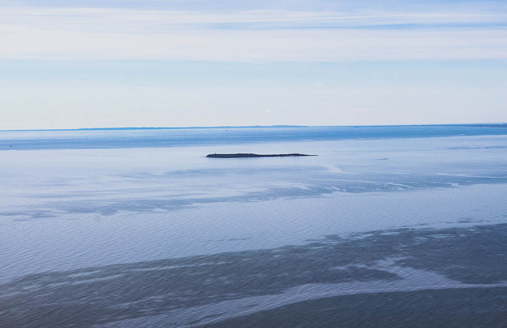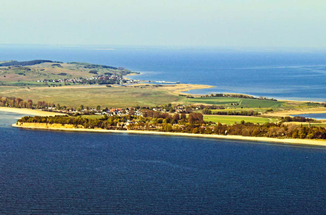 Luftaufnahme hinüber zur Greifswalder Oie, zwischen Rügen und Usedom.