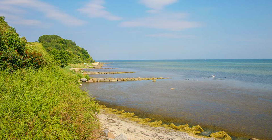 Baden am Naturstrand des Großen Jasmunder Boddens bei Lietzow.
