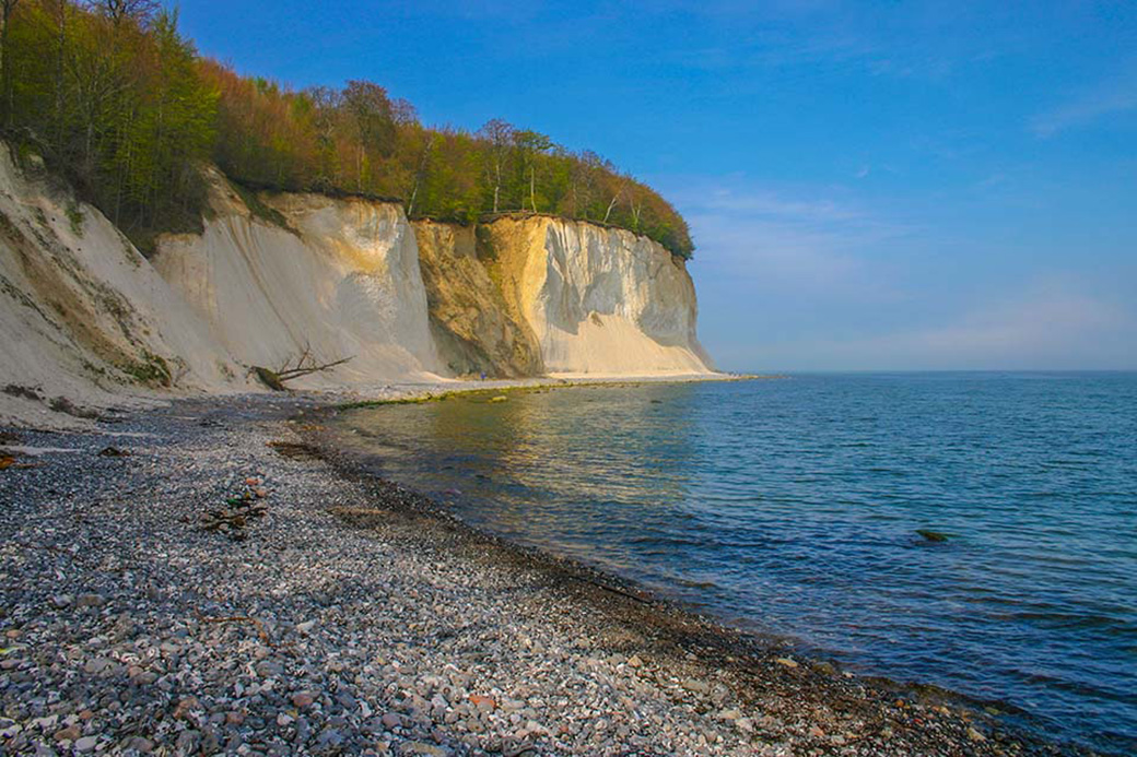 Nationalpark Jasmund: Am frühen Nachmittag fallen die letzten Sonnenstrahlen auf die Kreideküste.