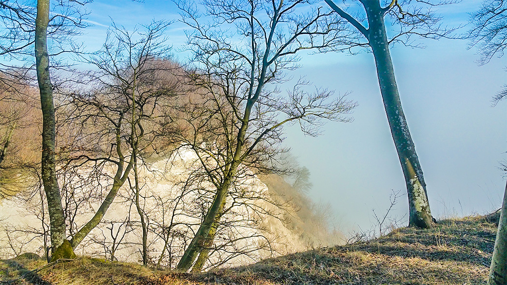 Unter dem Raureifschleier verrenken sich die Stämme und Äste der Krüppelbuchen wie im Tanz.