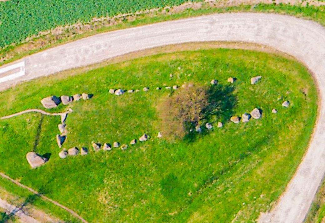 Luftaufnahme der Nobbiner Großsteinanlage.