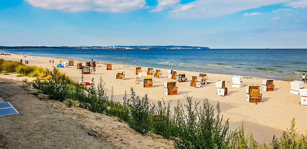 Der Strand von Prora von der zukünftigen Kurpromenade mit Blick auf Jasmund.
