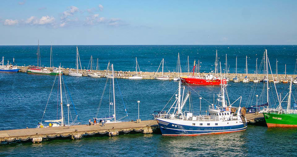 Schiffsanleger, heute hauptsächlich für Versorgungsschiffe zu den Offshore-Windanlagen und Außenmole mit Anleger für Segelschiffe.