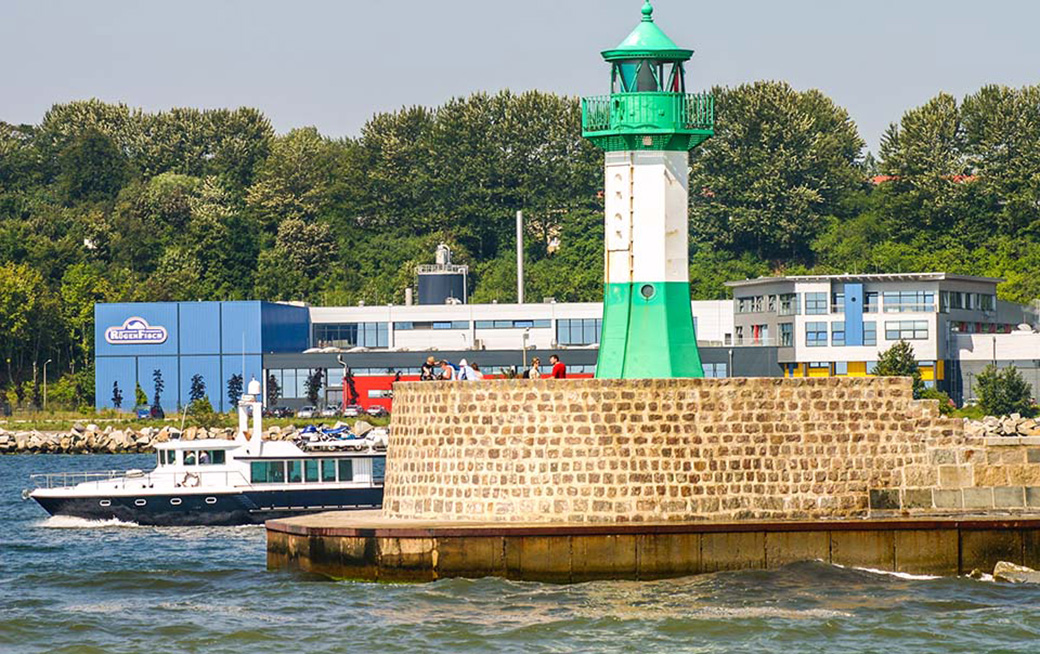 Blick vom Seebrückenvorplatz auf die Ostsee und den Buchenwald der Granitz.